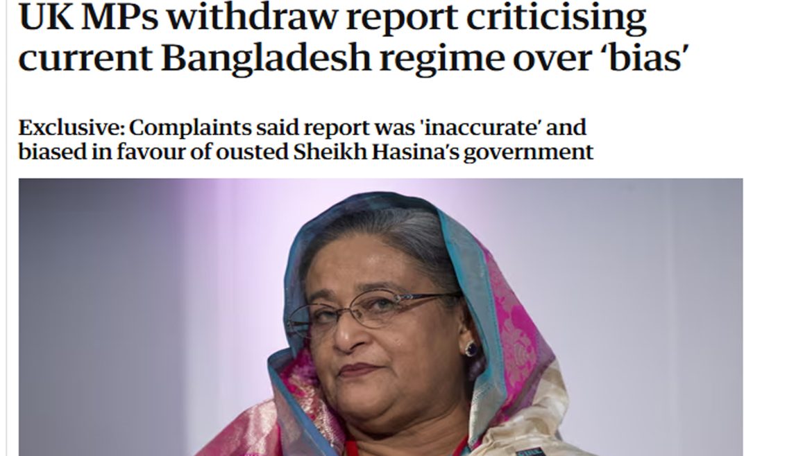 বাংলাদেশের অন্তর্বর্তী সরকারকে নিয়ে প্রকাশিত ‘বিতর্কিত’ প্রতিবেদনটি প্রত্যাহার করে নিয়েছেন একদল ব্রিটিশ এমপি। রোববার (১৯ জানুয়ারি) এক প্রতিবেদনে এ তথ্য জানিয়েছে ব্রিটিশ সংবাদমাধ্যম গার্ডিয়ান।