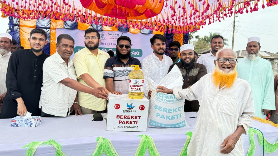 স্টাফ রিপোর্টার : সম্প্রতি আকস্মিক বাঁধ ভেঙে যাওয়ায় সাতক্ষীরার আশাশুনি উপজেলার আনুলিয়া ও পার্শ্ববর্তী কয়েকটি ইউনিয়নে ব্যাপক ক্ষয়ক্ষতি হয়। ঘরবাড়ি, খাবার ও সহায়সম্বল হারিয়ে নিঃস্ব হয়ে পড়া পরিবারগুলোর জন্য দোস্ত এইডের ফ্যামিলি ফুড প্যাকেট অত্র অঞ্চলে ব্যাপক সাড়া ফেলেছে। প্রতিটি ফুড প্যাকেজে রয়েছে ২৫ কেজি চাল, ৫ লিটার তেল, ডাল, আলু, পেয়াজ, মশলাসহ নিত্য প্রয়োজনীয় প্রায় ৫০ কেজি খাদ্য সামগ্রী। প্রতিটি ফুড প্যাকেট পরিবারগুলোর প্রায় ২ মাসের খাদ্য চাহিদা পূরণ করবে বলে আশা করেন সংশ্লিষ্টরা।