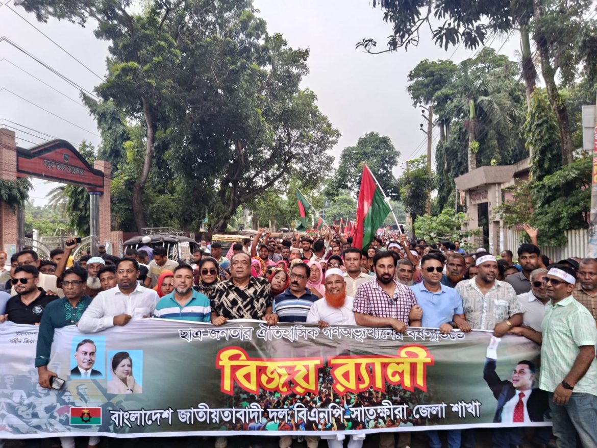 স্টাফ রিপোর্টারঃ সাতক্ষীরায় ছাত্র-জনতার ঐতিহাসিক গণঅভ্যুত্থানের বর্ষপূর্তিতে বিজয় র্যালী ও আলোচনা সভা অনুষ্ঠিত হয়েছে। জেলা জাতীয়তাবাদী দল বিএনপির আয়োজনে বুধবার বিকালে শহরের ইটাগাছা জেলা বিএনপির আহ্বায়ক রহমাতুল্লাহ পলাশের সভাপতিত্বে ও জেলা বিএনপির সদস্য সচিব আবু জাহিদ ডাবলুর সঞ্চালনায় বক্তব্য রাখেন সাবেক সংসদ ও বিএনপির নির্বাহী কমিটির সদস্য কাজী আলাউদ্দিন,সাবেক সাধাঃ সম্পাদক চেয়ারম্যান আব্দুল আলিম, জেলা বিএনপির সিনিয়র যুগ্ন আহ্বায়ক আবুল হাসান হাদী,যুগ্ন আহ্বায়ক ও পৌর মেয়র তাসকিন আহমেদ চিসতি, ডাঃ মনিরুজ্জামান। বক্তারা বলেন, ফ্যাসিস্ট সরকার দীর্ঘদিন দেশকে কারাগারে পরিণত করে রেখেছিল। বিএনপি নেতাকর্মীদের নামে মিথ্যা মামলা দিয়ে খান্ত হয়নি।