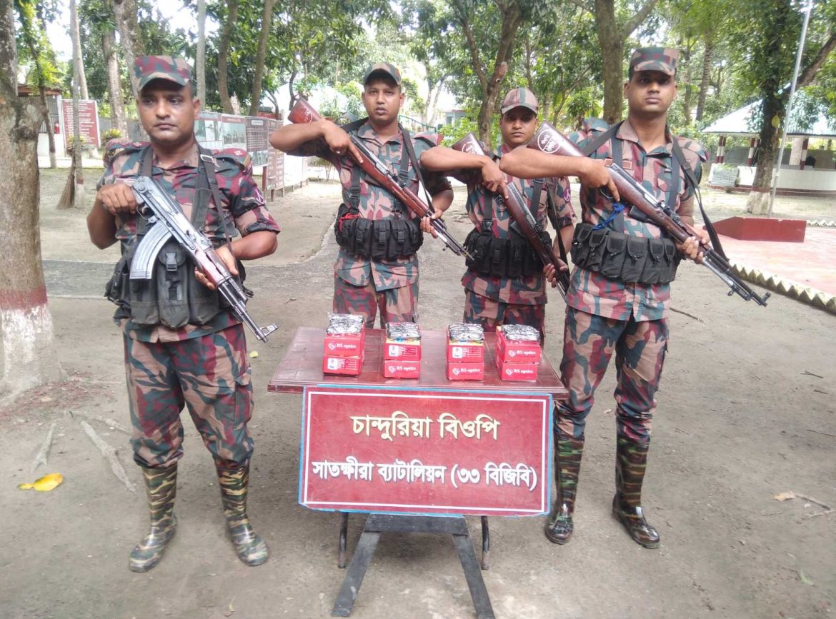 সাতক্ষীরা ব্যাটালিয়ন (৩৩ বিজিবি)অধিনায়ক লেঃ কর্নেল মোঃ আশরাফুল হক প্রেস বিজ্ঞপ্তিতে জানান, গোয়েন্দা তথ্যের ভিত্তিতে কুশখালী বিওপির বিশেষ আভিযানিক দল সীমান্ত পিলার-১২/১ এস হতে আনুমানিক ২০০ গজ বাংলাদেশের অভ্যন্তরে সাতক্ষীরা সদর থানাধীন আমবাগান নামক স্থান হতে ৭০,০০০ টাকা মূল্যের ভারতীয় ঔষধ আটক করে। হিজলদী বিওপির বিশেষ আভিযানিক দল সীমান্ত পিলার-১৩/৩ এস হতে আনুমানিক ২০০ গজ বাংলাদেশের অভ্যন্তরে সাতক্ষীরা সদর থানাধীন বাঁশবাগান নামক স্থান হতে ২২,০০০ টাকা মূল্যের ভারতীয় চশমা আটক করে। মাদরা বিওপির বিশেষ আভিযানিক দল মেইন পিলার-১৩/৩ এস হতে আনুমানিক ২০০ গজ বাংলাদেশের অভ্যন্তরে কলারোয়া থানাধীন চান্দা নামক স্থান হতে ২৭,০০০ টাকা মূল্যের ভারতীয় শাড়ি আটক করে। কাকডাঙ্গা বিওপির বিশেষ আভিযানিক দল সীমান্ত পিলার ১৩/৩ এস এর ৪ আরবি হতে আনুমানিক ৩০০ গজ বাংলাদেশের অভ্যন্তরে কলারোয়া থানাধীন কেড়াগাছি নামক স্থান হতে ৩,৫০,০০০ টাকা মূল্যের ভারতীয় ঔষধ আটক করে। চান্দুরিয়া বিওপির বিশেষ আভিযানিক দল সীমান্ত পিলার ১৭/৭ এস এর ১৬ আরবি হতে আনুমানিক ২০০ গজ বাংলাদেশের অভ্যন্তরে কলারোয়া থানাধীন কাদপুর নামক স্থান হতে ৪৪,০০০ টাকা মূল্যের ভারতীয় চশমা আটক করে। তলুইগাছা বিওপির বিশেষ আভিযানিক দল সীমান্ত পিলার ১২/৩ এস হতে আনুমানিক ২৫০ গজ বাংলাদেশের অভ্যন্তরে সাতক্ষীরা থানাধীন নটিজঙ্গল নামক স্থান হতে ৭০,০০০ টাকা মূল্যের ভারতীয় ঔষধ আটক করে। সুলতানপুর বিওপির বিশেষ আভিযানিক দল সীমান্ত পিলার ১৬/৪ এস হতে আনুমানিক ৭০০ গজ বাংলাদেশের অভ্যন্তরে কলারোয়া থানাধীন পোতা নামক স্থান হতে ৭০,০০০ টাকা মূল্যের ভারতীয় ঔষধ আটক করে। এছাড়াও, ঝাউডাঙ্গা বিশেষ ক্যাম্প এর আভিযানিক দল বাংলাদেশের অভ্যন্তরে কলারোয়া থানাধীন বিহারিনগর নামক স্থান হতে ১,৪০,০০০ টাকা মূল্যের ভারতীয় ঔষধ আটক করে।