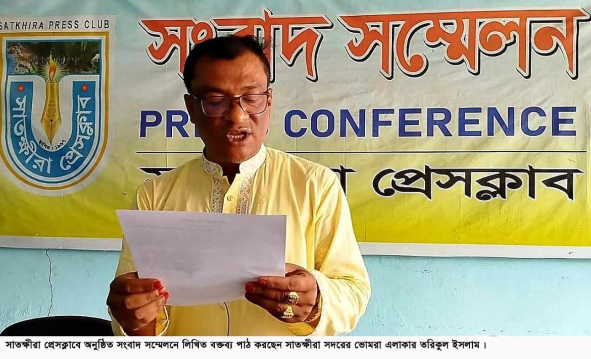 সংবাদ সম্মেলনে লিখিত বক্তব্যে তিনি বলেন, আমি দীর্ঘদিন ধরে সততা দক্ষতা এবং সুনামের সাথে ভোমরা ইউনিয়নের একটি শ্রমিক সংগঠনের নেতৃত্ব দিয়ে আসছি। বিগত আওয়ামী সরকারের আমলে আমার মত নির্যাতিত আর কেউ হয়নি। জামায়াত-বিএনপি বলে তারা সবসময় আমাকে চাপে রাখত। বিভিন্নভাবে নির্যাতন করতো। তবুও আমি তাদের কাছে মাথা নত করিনি। আমি সত্যের পথে থেকে আমার গতিতে এগিয়ে চলেছি। অন্যায়ের সাথে কখনো আপোষ করিনি। তরিকুল ইসলাম বলেন, আমি ভোমরা ১১৫৯ শ্রমিক ইউনিয়নের সদস্য ছিলাম। ভোটে দাড়াতে দিবে না বলে আওয়ামী দালালরা তালিকা থেকে আমার নাম বাদ দিয়েছিল। পরে লক্ষ লক্ষ টাকা খরচ করে আমি ওই তালিকায় নাম উঠাই এবং নির্বাচনে দাড়িয়ে বিপুল ভোটে সাধারণ সম্পাদক নির্বাচিত হই। এরপরও ৬ মাস যাবত আমাদের ক্ষমতা দেওয়া হয়নি। এক পর্যায়ে সাধারণ শ্রমিকরা আমাদের ক্ষমতায় বসিয়ে দেয়। এইভাবে তিন বছর পর আবার নির্বাচন আসলে পূর্বের মত একই অবস্থা সৃষ্টি করা হয়। বিগত দিনের দালাল এক হয়ে কোটি টাকার বাণিজ্য করে আমাদেরকে সরিয়ে পকেট কমিটি করায়। ওই কমিটিতে আমার নামটা রাখাছিল সাধারণ সম্পাদক হিসাবে। কিন্তু সেই অবৈধ কমিটি আমি মেনে নেয়নি। আমার মাথায় বন্ধুক ঠেকিয়েও দমাতে পারেনি। জামায়াত-বিএনপি বলে আমার উপর পাশবিক নির্যাতন চালানো হয়। তবুও আমি তাদের কাছে মাথানত করিনি। তিনি আরো বলেন, ভোমরা ইউনিয়নের রাস্তা ঘাটের উন্নয়ন, মসজিদ মাদ্রাসায় আর্থিক সহযোগিতা, গরিব অসহায় মানুষের পাশে দাড়ানো থেকে শুরু করে এলাকায় ওয়াজ মাহফিল করতেও প্রকাশ্যে আমি কাজ করেছি। আওয়ামী ফ্যাস্টিটের হুমকি উপেক্ষা করেও মানুষের পাশে দাড়িয়েছি। কিন্তু ৫ আগস্ট সরকার পতনের পর কিছু কুলাঙ্গার বেনামে ভুয়া আইডি খুলে আমার বিরুদ্ধে মিথ্যা অপপ্রচার চালাচ্ছে। একটি সংগঠনের কার্যালয়ে সরকার প্রধানের ছবি থাকতেই পারে। সংগঠনের স্বার্থে বিভিন্ন রাজনৈতিক নেতাদের সাক্ষাত করার প্রয়োজন হতেই পারে। কিন্তু ছবিতে প্রমানিত হয় না যে, সে আওয়ামী রাজনীতির সাথে জড়িত। এধরনের ছবি দেখলে বিএনপি-জামায়াতের শত শত নেতাকর্মী দোষী। অথচ আওয়ামীলীগ ফ্যাস্টিটের দোসরার ফয়দা লুটার জন্যই আমাকে আওয়ামী ট্যাগ লাগানোর চক্রান্ত চালিয়ে যাচ্ছে। তিনি অভিযোগ করে বলেন, শাখরা গ্রামের বিএনপির বহিস্কৃত নেতা সাবেক চেয়ারম্যান শামছুরের ছেলে সাইফুল ইসলাম, ভোমরার মৃত হামিদ সরদারের ছেলে হাসান আলী লাল্টু, শ্রীরামপুরের আজাদ তাদের নিজেদের ফেসবুক আইডিতে আমাকে জড়িয়ে মিথ্যাচার করত। পরবর্তীতে ভূয়া আইডি খুলে অপপ্রচার চালাচ্ছেন। এর কিছুদিন আগে সাইফুলের পিতা শামছুর আমার কাছে ২৫ হাজার টাকা ধার হিসেবে চেয়েছিল। আমি না দেওয়ার পর থেকেই তার ছেলেকে দিয়ে এ