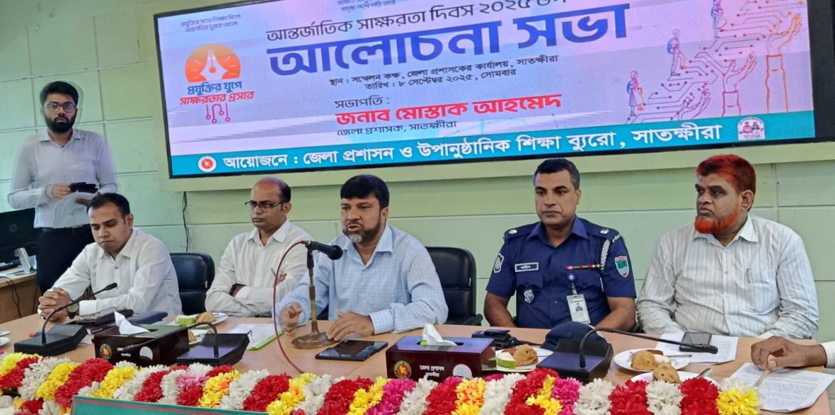 মীর আবু বকরঃ সাতক্ষীরায় আন্তর্জাতিক সাক্ষরতা দিবসে র্যালি ও আলোচনা সভা অনুষ্ঠিত হয়েছে। জেলা প্রশাসন ও উপানুষ্ঠানিক শিক্ষা ব্যুরো যৌথ আয়োজনে সোমবার সকালে ১০ জেলা প্রশাসকের সম্মেলন কক্ষে আলোচনা সভায় জেলা প্রশাসক মোস্তাক আহমেদের সভাপতিত্বে সভায় বক্তব্য রাখেন, সাতক্ষীরা সরকারি কলেজের অধ্যক্ষ প্রফেসর আবুল হাশেম,অতিরিক্ত পুলিশ সুপার (সদর সার্কেল) শাহিনুর চৌধুরী, অতিরিক্ত জেলা প্রশাসক(সার্বিক) বিষ্ণুপদ পাল,অতিরিক্ত জেলা ম্যাজিস্ট্রেট (শিক্ষা ও আইসিটি) রিপন বিশ্বাস।এ সময় বক্তব্য রাখেন ও উপস্থিত ছিলেন জেলা মাধ্যমিক শিক্ষা অফিসার মুহ আবুল খায়ের, জেলা প্রাথমিক শিক্ষা অফিসার হোসনে ইয়াসমিন কারিমী, সরকারি বালিকা উচ্চ বিদ্যালয়ের ভারপ্রাপ্ত প্রধান শিক্ষক মোঃ আলাউদ্দিন,সাতক্ষীরা প্রেসক্লাবের সাধাঃ সম্পাদক আব্দুল বারী,সাসের নির্বাহী পরিচালক ইমান আলী, নবারুণ মাধ্যমিক বালিকা বিদ্যালয়ের প্রধান শিক্ষক আব্দুল মালেক, জেলা কারাগারের জেলার মনিরুল ইসলাম মনির সহ বিভিন্ন শিক্ষা প্রতিষ্ঠানের প্রধান শিক্ষক উপস্থিত ছিলেন। বক্তারা বলেন,শিক্ষা প্রতিষ্ঠান কিভাবে পরিচালিত হবে সেটা প্রতিষ্ঠান প্রধান ঠিক করবেন। শিক্ষকরা ক্লাসে মনোযোগ দিয়ে পাঠদান করালে আর কোচিংয়ে দরকার হয় না। শিক্ষকদের সময় মত ক্লাসে থাকতে হবে। ক্লাসের সময় বাহিরে প্রাইভেট পড়ানোর চেষ্টা করবেন না। শিক্ষার্থীদের নিয়মিত শিক্ষার পাশাপাশি নৈতিক শিক্ষা দিতে হবে। বাংলাদেশে নিরক্ষর ব্যক্তির তুলনামূলক নগণ্য। সকলের সম্মিলিত প্রচেষ্টা নিরক্ষর ব্যক্তিদের সাক্ষরতা আওতায় আনা সম্ভব।এর পূর্বে জেলা কালেক্টরেট চত্বর হতে এক বর্ণাঢ্য র্যালি বের হয়ে প্রধান সড়ক প্রদক্ষিণ করে।পাওয়ার পয়েন্ট উপস্থাপন করেন উপানুষ্ঠানিক শিক্ষা ব্যুরো সহকারী পরিচালক শাহরিয়ার নাঈম শাইখ।