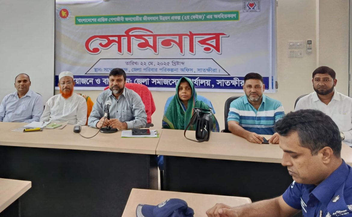 স্টাফ রিপোর্টারঃ’বাংলাদেশের প্রান্তিক পেশাজীবী জনগোষ্ঠীর জীবনমান উন্নয়ন প্রকল্প (২য় ফেইজ)’ এর অবহিতকরণ সেমিনার অনুষ্ঠিত হয়েছে। জেলা সমাজসেবা অধিদপ্তরের আয়োজনে বৃহস্পতিবার বেলা ১১ টায় জেলা পরিবার পরিকল্পনা অধিদপ্তরের কনফারেন্স রুমে জেলা সমাজসেবা অধিদপ্তরের উপ-পরিচালক সন্তোষ কুমার নাথের সভাপতিত্বে প্রধান অতিথি হিসেবে উপস্থিত ছিলেন জেলা প্রশাসক মোস্তাক আহমেদ। তিনি বলেন সমাজসেবা অধিদপ্তর দীর্ঘদিন দুস্থ অসহায় মানুষের কল্যাণে কাজ করে যাচ্ছে। দুস্থ ও অসচ্ছল পরিবারকে স্বাবলম্বী করতে বিভিন্ন প্রশিক্ষণ দিয়ে থাকেন। বিশেষ করে প্রান্তিক জনগোষ্ঠীর জীবন মান উন্নয়নে সমাজসেবার ভূমিকা প্রশংসনীয়।কামার-কুমার, সুইপার, নরসিন্ধ রাষ্ট্রের জন্য সকলের প্রয়োজন। কোনভাবে কাউকে ছোট করে দেখার সুযোগ নেই। সকালে সম্মিলিত প্রচেষ্টায় সামনে এগিয়ে নিতে হবে।বিশেষ অতিথি হিসেবে বক্তব্য রাখেন জেলা জামাতের আমির উপাধ্যক্ষ শহিদুল ইসলাম, জেলা বিএনপি’র সদস্য সচিব আবু জাহিদ ডাবলু, জেলা পরিবার পরিকল্পনা অধিদপ্তরের উপ-পরিচালক রওশন আরা জামান, সমাজসেবা অধিদপ্তরের বিভাগীয় কার্যালয়ের সহকারী পরিচালক ডঃ মেহেদী আল মাসুদ। উপস্থিত ছিলেন, জেলা তথ্য অফিসার মোঃ জাহারুল ইসলাম, সাতক্ষীরার প্রেসক্লাবের সাধাঃ সম্পাদক মোঃ আব্দুল বারী, জেলা পরিবার পরিকল্পনা অধিদপ্তরের সহকারী পরিচালক ডাঃ প্রবীর মুখার্জি প্রমুখ। এ সময় কলারোয়া উপজেলার বিভিন্ন সেক্টরের প্রান্তিক পেশাজীবী জনগোষ্ঠী উপস্থিত ছিলেন। সমগ্র অনুষ্ঠান সঞ্চালনা করেন জেলা সমাজসেবা অধিদপ্তরের সহকারী পরিচালক মোঃ রোকনুজ্জামান।