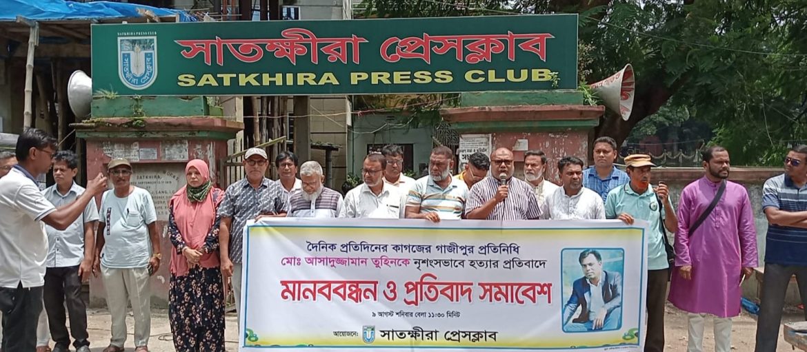 সাংবাদিক আসাদুজ্জামান তুহিনকে হত্যার প্রতিবাদে সাতক্ষীরায় মানববন্ধন
