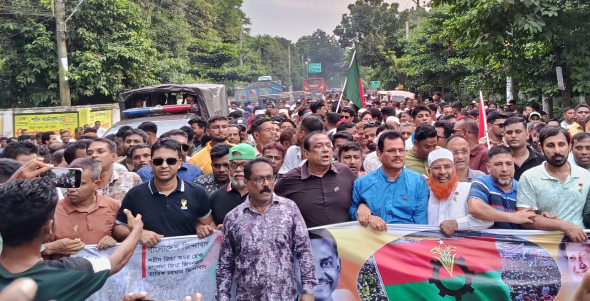 স্টাফ রিপোর্টারঃ জাতীয়তাবাদী দল বিএনপির ৪৭ তম প্রতিষ্ঠা বার্ষিকী উপলক্ষে বর্ণাঢ্য র্যালি অনুষ্ঠিত হয়েছে। সাতক্ষীরা জেলা বিএনপির আয়োজনে রবিবার বিকেলে শহরের গণপূর্ত বিভাগের সামনে থেকে বর্ণাঢ্য র্যালি বের হয়ে শহরের প্রধান প্রধান সড়ক প্রদক্ষিণ শেষে নিউমার্কেট মোড়ে আলোচনা সভায় মিলিত হয়। জেলা বিএনপির আহ্বায়ক রহমাতুল্লাহ পলাশের সভাপতিত্বে ও জেলা বিএনপির সদস্য সচিব আবু জাহিদ ডাবলুর সঞ্চালনায় প্রধান অতিথির বক্তব্য রাখেন কেন্দ্রীয় প্রকাশনা বিষয়ক সম্পাদক সাবেক এমপি হাবিবুল ইসলাম হাবিব। তিনি বলেন, জাতীয়তাবাদী দল বিএনপি বাংলাদেশের একটি শক্তিশালী সংগঠন। বিএনপি’র মার্কা ধানের শীষ। তারেক রহমানের মার্কা ধানের শীষ। আগামী নির্বাচনে নেতাকর্মীকে ঐক্যবদ্ধভাবে ধানের শীষের প্রার্থীকে বিজয়ী করতে হবে। বক্তব্য রাখেন কেন্দ্রীয় কমিটির সদস্য ও সাবেক এমপি কাজী আলাউদ্দিন। উপস্থিত ছিলেন, জেলা বিএনপির সিনিয়র যুগ্ম আহ্বায়ক আবুল হাসান হাদী,যুগ্ম আহ্বায়ক সাবেক মেয়র তাসকিন আহমেদ চিসতি,যুগ্ম আহ্বায়ক ড মনিরুজ্জামান, জেলা বিএনপির সদস্য হাবিবুর রহমান হাবি, সাবেক কাউন্সিলর শেখ মাসুম বিল্লাহ শাহীন, প্রভাষক আতাউর রহমান প্রমুখ। এসময় জেলা বিএনপির সকল অঙ্গ সহযোগী সংগঠনের হাজার হাজার হাজার নেতাকর্মী উপস্থিত ছিলেন।