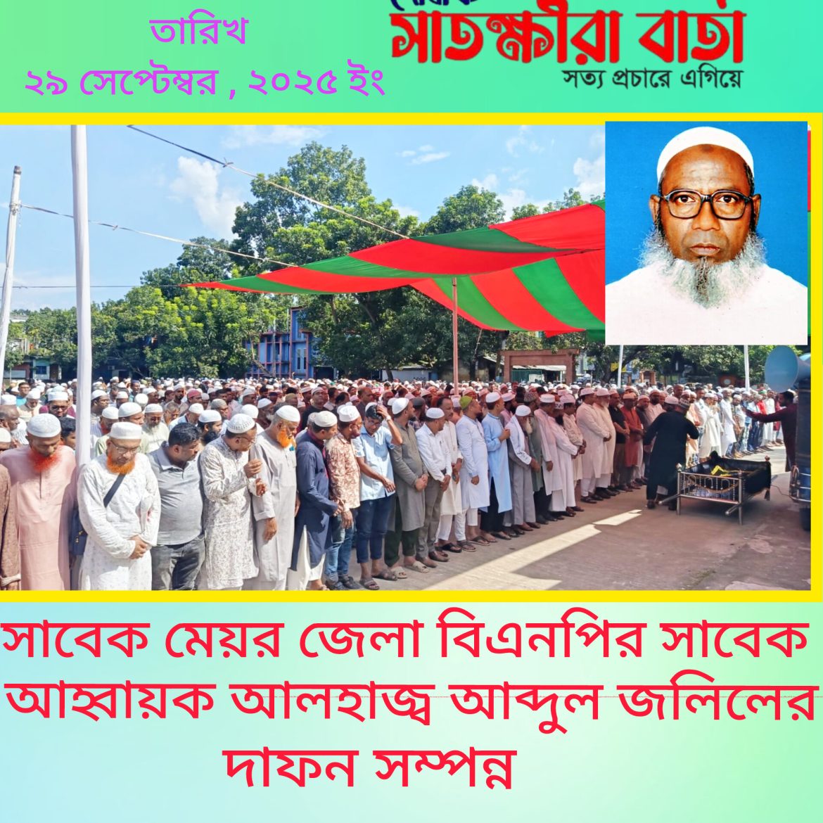 সাতক্ষীরায় সাবেক মেয়র জেলা বিএনপির সাবেক আহ্বায়ক আলহাজ্ব আব্দুল জলিলের দাফন সম্পন্ন