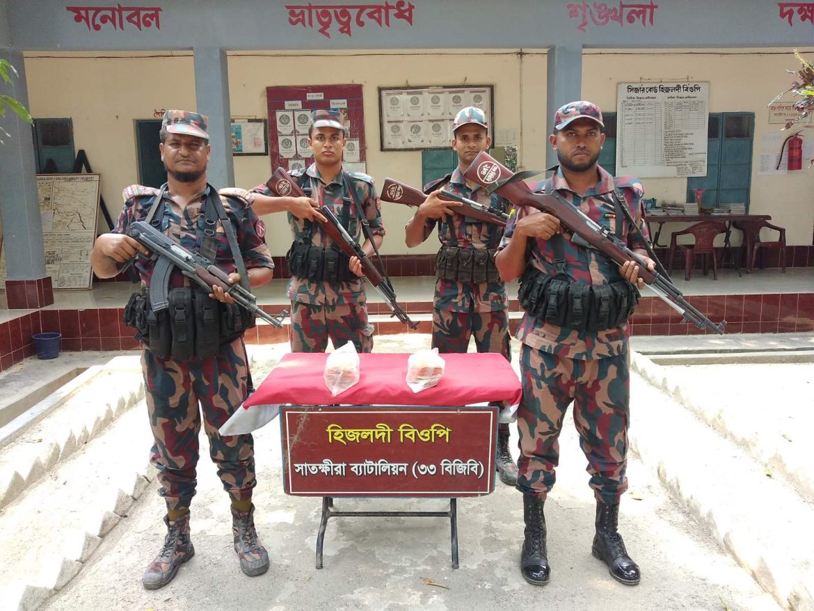 গোয়েন্দা তথ্যের ভিত্তিতে ভোমরা বিওপির বিশেষ আভিযানিক দল সীমান্ত পিলার-৪/৪ এস হতে ২০০ গজ বাংলাদেশের অভ্যন্তরে সাতক্ষীরা সদর থানাধীন লক্ষীদাড়ি নামক স্থান হতে ২৮,০০০ টাকা মূল্যের ভারতীয় শাড়ি আটক করে। গাজীপুর বিওপির বিশেষ আভিযানিক দল সীমান্ত পিলার-৪/৫ এস হতে আনুমানিক ২০০ গজ বাংলাদেশের অভ্যন্তরে সাতক্ষীরা সদর থানাধীন বোস্তামের ঘের নামক স্থান হতে ৩৫,০০০ টাকা মূল্যের ভারতীয় শাড়ি আটক করে। কালিয়ানী বিওপির বিশেষ আভিযানিক দল মেইন পিলার-৯ হতে আনুমানিক ২০০ গজ বাংলাদেশের অভ্যন্তরে সাতক্ষীরা সদর থানাধীন হাসের খামার নামক স্থান হতে ৩৫,০০০ টাকা মূল্যের ভারতীয় ঔষধ আটক করে। ঝাউডাঙ্গা বিশেষ ক্যাম্পের বিশেষ আভিযানিক দল বাংলাদেশের অভ্যন্তরে কলারোয়া থানাধীন গোপিনাথপুর নামক স্থান হতে ১,৪০,০০০ টাকা মূল্যের ভারতীয় ঔষধ আটক করে। মাদরা বিওপির বিশেষ আভিযানিক দল সীমান্ত পিলার ১৩/৩ এস এর ১০ আরবি হতে আনুমানিক ২০০ গজ বাংলাদেশের অভ্যন্তরে কলারোয়া থানাধীন রাজপুর নামক স্থান হতে ৭০,০০০ টাকা মূল্যের ভারতীয় ঔষধ আটক করে। এছাড়াও, হিজলদী বিওপির বিশেষ আভিযানিক দল সীমান্ত পিলার ১৪/১ এস হতে আনুমানিক ২০০ গজ বাংলাদেশের অভ্যন্তরে কলারোয়া থানাধীন আমবাগান নামক স্থান হতে ১,৪০,০০০ টাকা মূল্যের ভারতীয় ঔষধ আটক করে। সর্বমোট ৪,৪৮,০০০/- (চার লক্ষ আটচল্লিশ হাজার) টাকা মূল্যের বিভিন্ন চোরাচালানী মালামাল আটক করে।
