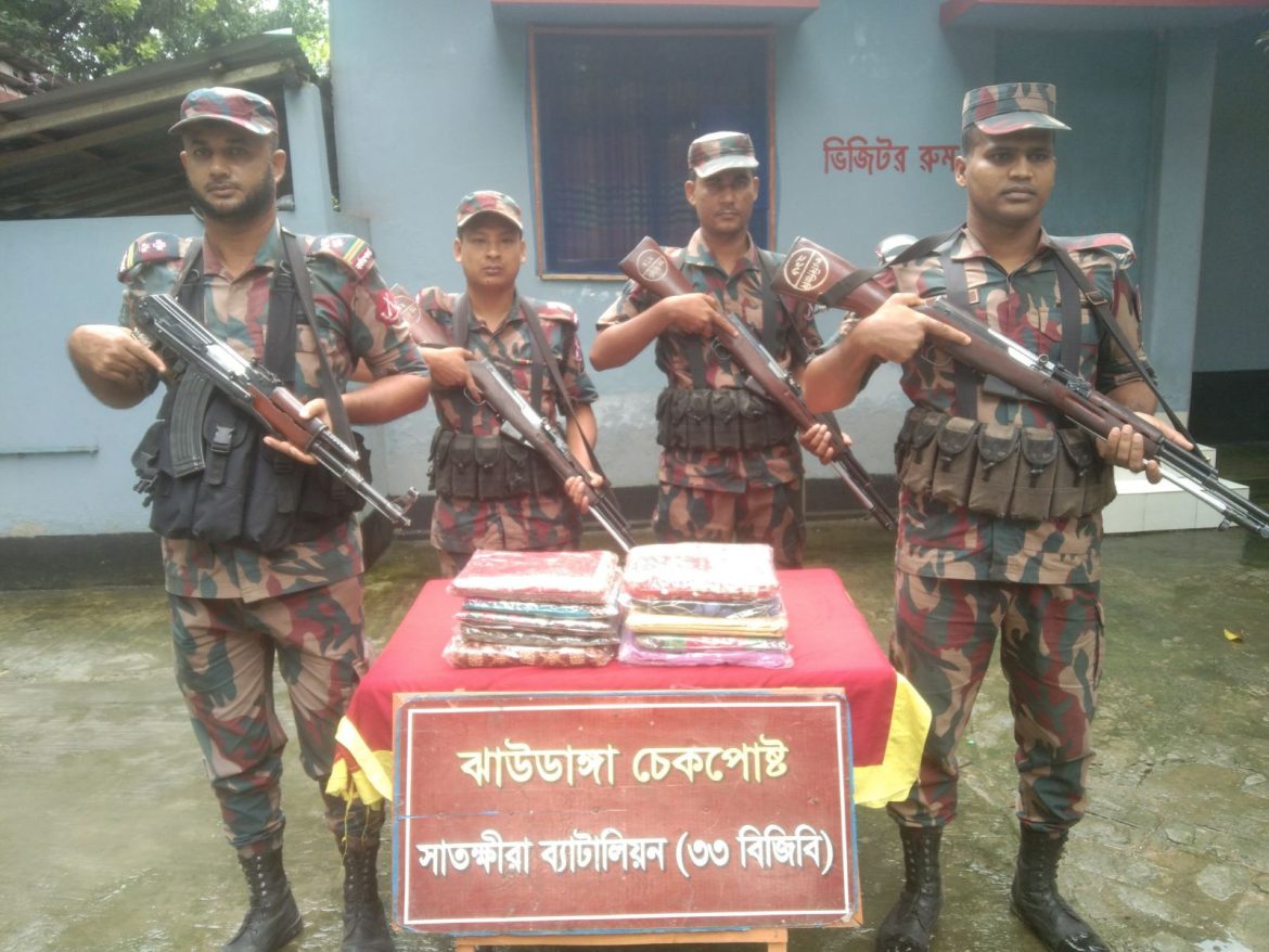 এছাড়াও, গাজীপুর বিওপির এর বিশেষ আভিযানিক দল সীমান্ত পিলার ৪/৫-এস হতে আনুমানিক ১০০ গজ বাংলাদেশের অভ্যন্তরে সাতক্ষীরা সদর থানাধীন বেলতলা এলাকায় নামক স্থান হতে ৩৫,০০০/- টাকা মূল্যের ভারতীয় ঔষধ আটক করে। কাকডাঙ্গা বিওপির বিশেষ আভিযানিক দল সীমান্ত পিলার-১৩/৩-এস ৫ ও ৭ আরবি হতে আনুমানিক ৩০০-৪০০ গজ বাংলাদেশের অভ্যন্তরে কলারোয়া থানাধীন দখল ও গেড়াখালী নামক স্থান হতে ৩,৬৫,০০০/- টাকা মূল্যের ভারতীয় ঔষধ ও তালাচাবি আটক করে। ঝাউডাঙ্গা বিশেষ ক্যাম্প এর বিশেষ আভিযানিক দল বাংলাদেশের অভ্যন্তরে কলারোয়া থানধীন বোয়ালিয়া নামক স্থান হত ৩৫,০০০/- টাকা মূল্যের ভারতীয় শাড়ি আটক করে। ঘোনা বিওপি’র বিশেষ আভিযানিক দল সীমান্ত পিলার ৬/৮-এস হতে আনুমানিক ২০০ গজ বাংলাদেশের অভ্যন্তরে সাতক্ষীরা সদর থানাধীন দাঁতভাঙ্গা নামক স্থান হতে ৩৫,০০০/- টাকা মূল্যের ভারতীয় ঔষধ আটক করে। চান্দুরিয়া বিওপির বিশেষ আভিযানিক দল সীমান্ত পিলার-১৭/২ ও ৪ এস হতে আনুমানিক ২০০ গজ বাংলাদেশের অভ্যন্তরে কলারোয়া থানধীন গোয়ালপাড়া নামক স্থান হতে ১,০৫,০০০ টাকা মূল্যের ভারতীয় ঔষধ আটক করে। মাদরা বিওপির বিশেষ আভিযানিক দল সীমান্ত পিলার-১৩/৩-এস এর ৭ আরবি হতে আনুমানিক ৩০০ গজ বাংলাদেশের অভ্যন্তরে কলারোয়া থানধীন ভাদিয়ালী নামক স্থান হতে ৭০,০০০ টাকা মূল্যের ভারতীয় ঔষধ আটক করে। পদ্মশাখরা বিওপির বিশেষ আভিযানিক দল সীমান্ত পিলার-২/১-এস হতে আনুমানিক ৩০০ গজ বাংলাদেশের অভ্যন্তরে সাতক্ষীরা থানধীন দাসপাড়া নামক স্থান হতে ৩৫,০০০ টাকা মূল্যের ভারতীয় ঔষধ আটক করে। এছাড়াও, ভোমরা বিওপির বিশেষ আভিযানিক দল সীমান্ত পিলার-৩/২-এস হতে আনুমানিক ২০০ গজ বাংলাদেশের অভ্যন্তরে সাতক্ষীরা সদর থানধীন লক্ষীদাড়ি নামক স্থান হতে ২,১০,০০০/- টাকা মূল্যের ভারতীয় ঔষধ আটক করে।