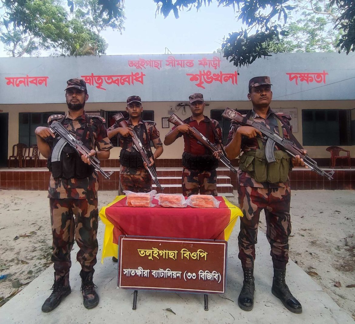 গোয়েন্দা তথ্যের ভিত্তিতে ভোমরা বিওপির বিশেষ আভিযানিক দল সীমান্ত পিলার-৩/৪ এস হতে ২০০ গজ বাংলাদেশের অভ্যন্তরে সাতক্ষীরা সদর থানাধীন লক্ষীদাড়ি নামক স্থান হতে ৪২,০০০ টাকা মূল্যের ভারতীয় শাড়ি আটক করে। বাকাল চেকপোস্ট এর বিশেষ আভিযানিক দল বাংলাদেশের অভ্যন্তরে সাতক্ষীরা সদর থানাধীন শ্রীরামপুর নামক স্থান হতে ৭০,০০০ টাকা মূল্যের ভারতীয় ঔষধ আটক করে। তলুইগাছা বিওপির বিশেষ আভিযানিক দল সীমান্ত পিলার-১২/৩ এস হতে আনুমানিক ৪০০ গজ বাংলাদেশের অভ্যন্তরে কলারোয়া থানাধীন চৌরঙ্গী মোড় নামক স্থান হতে ২,১০,০০০ টাকা মূল্যের ভারতীয় ঔষধ আটক করে। কাকডাঙ্গা বিওপির বিশেষ আভিযানিক দল সীমান্ত পিলার-১৩/৩ এস এর ৪ আরবি হতে আনুমানিক ৪০০ গজ বাংলাদেশের অভ্যন্তরে কলারোয়া থানাধীন কেড়াগাছি নামক স্থান হতে ৩৮,৭০০ টাকা মূল্যের ভারতীয় পেন্সিল ব্যাটারি আটক করে। ঝাউডাঙ্গা বিশেষ ক্যাম্পের আভিযানিক দল বাংলাদেশের অভ্যন্তরে কলারোয়া থানাধীন বোয়লিয়া কলেজ মোড় নামক স্থান হতে ১,৪০,০০০ টাকা মূল্যের ভারতীয় ঔষধ আটক করে। মাদরা বিওপির বিশেষ আভিযানিক দল সীমান্ত পিলার ১৩/৩ এস হতে আনুমানিক ২০০ গজ বাংলাদেশের অভ্যন্তরে কলারোয়া থানাধীন ভাদিয়ালী নামক স্থান হতে ৭০,০০০ টাকা মূল্যের ভারতীয় ঔষধ আটক করে। সুলতানপুর বিওপির বিশেষ আভিযানিক দল সীমান্ত পিলার ১৭/১ এস হতে আনুমানিক ১৫০ গজ বাংলাদেশের অভ্যন্তরে কলারোয়া থানাধীন বর্মিতলা নামক স্থান হতে ৭০,০০০ টাকা মূল্যের ভারতীয় ঔষধ আটক করে। এছাড়াও, চান্দুরিয়া বিওপির বিশেষ আভিযানিক দল সীমান্ত পিলার ১৭/৭ এস এর ১৮ আরবি হতে আনুমানিক ৩০০ গজ বাংলাদেশের অভ্যন্তরে কলারোয়া থানাধীন কাদপুর আমবাগান নামক স্থান হতে ৩৫,০০০ টাকা মূল্যের ভারতীয় শাড়ি আটক করে। সর্বমোট ৬,৭৫,৭০০/- (ছয় লক্ষ পচাত্তর হাজার সাতশত) টাকা মূল্যের বিভিন্ন চোরাচালানী মালামাল আটক করে।