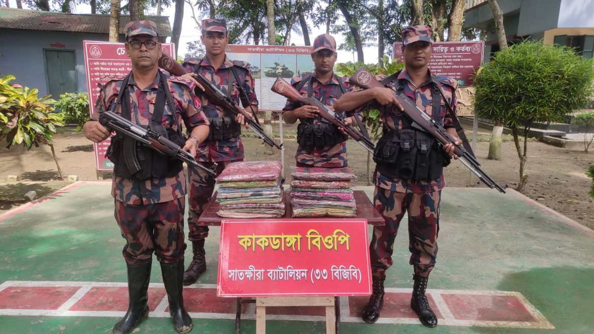 এছাড়াও, কাকডাঙ্গা বিওপি’র বিশেষ আভিযানিক দল সীমান্ত পিলার ১৩/৩-এস এর ৫ আরবি হতে আনুমানিক ৪০০ গজ বাংলাদেশের অভ্যন্তরে কলারোয়া থানাধীন গেড়াখালী মাঠ নামক স্থান হতে ৬৩,০০০/- টাকা মূল্যের শাড়ি আটক করে। চান্দুরিয়া বিওপি’র বিশেষ আভিযানিক দল সীমান্ত পিলার ১৭/৭ এস এর ৬ আরবি হতে আনুমানিক ১০০ গজ বাংলাদেশের অভ্যন্তরে কলারোয়া থানাধীন গোয়ালপাড়া নামক স্থান হতে ১,৪০,০০০/- টাকা মূল্যের ভারতীয় ঔষধ আটক করে। ঝাউডাঙ্গা বিশেষ ক্যাম্প আভিযানিক দল বাংলাদেশের অভ্যন্তরে সাতক্ষীরা সদর থানাধীন হরিণি নামক স্থান হতে ৭০,০০০/- টাকা মূল্যের ভারতীয় ঔষধ আটক করে। তলুইগাছা বিওপির বিশেষ আভিযানিক দল সীমান্ত পিলার-১৩/৩ এস হতে আনুমানিক ২০০ গজ বাংলাদেশের অভ্যন্তরে কলারোয়া থানাধীন কেড়াগাছি নামক স্থান হতে ১,০৫,০০০/- টাকা মূল্যের ভারতীয় ঔষধ আটক করে। ঘোনা বিওপির বিশেষ আভিযানিক দল সীমান্ত পিলার-৬/৫ এস হতে আনুমানিক ২০০ গজ বাংলাদেশের অভ্যন্তরে সাতক্ষীরা সদর থানাধীন বারোপোতা স্কুল মোড় নামক স্থান হতে ৪০,০০০/- টাকা মূল্যের ভারতীয় পাতার বিড়ি আটক করে। কুশখালী বিওপির বিশেষ আভিযানিক দল সীমান্ত পিলার-১২/২ এস হতে আনুমানিক ৩০০ গজ বাংলাদেশের অভ্যন্তরে কলারোয়া থানাধীন শ্মশ্বান ঘাট নামক স্থান হতে ৩৫,০০০/- টাকা মূল্যের ভারতীয় শাড়ি আটক করে। এছাড়াও, গাজীপুর বিওপির বিশেষ আভিযানিক দল সীমান্ত পিলার-৪/৫ এস হতে আনুমানিক ১০০ গজ বাংলাদেশের অভ্যন্তরে সাতক্ষীরা সদর থানাধীন বেলতলা নামক স্থান হতে ৭০,০০০/- টাকা মূল্যের ভারতীয় ঔষধ আটক করে। সর্বমোট ৮,৪৫,৫০০/- (আট লক্ষ পয়তাল্লিশ হাজার পাঁচশত) টাকা মূল্যের বিভিন্ন চোরাচালানী মালামাল আটক করে।