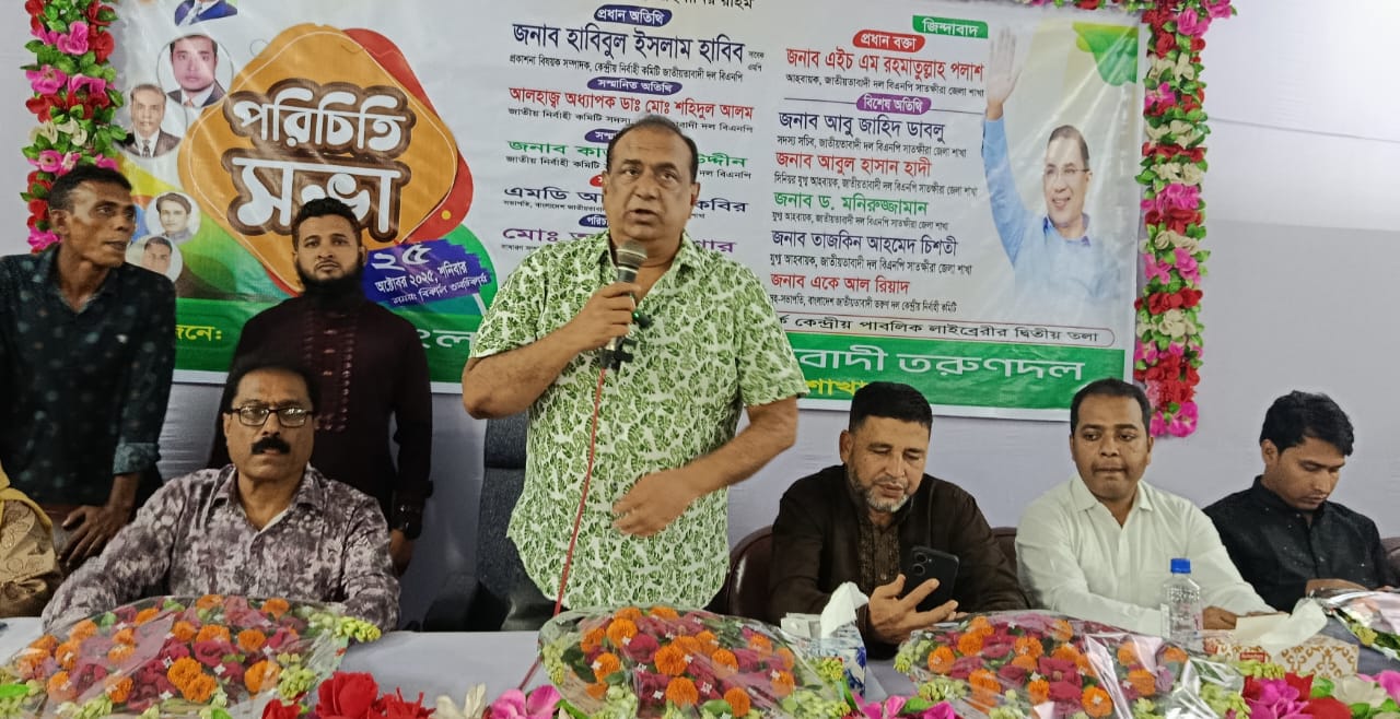 স্টাফ রিপোর্টারঃ সাতক্ষীরা জেলা জাতীয়তাবাদী তরুণ দলের পরিচিতি সভা অনুষ্ঠিত হয়েছে। জেলা তরুণদলের আয়োজনে শনিবার বিকেলে সাতক্ষীরা কেন্দ্রীয় পাবলিক লাইব্রেরি হল রুমে জেলা তরুণদলের সভাপতি এমডি আলমগীর কবিরের সভাপতিত্বে প্রধান অতিথির বক্তব্য রাখেন জেলা বিএনপি’র আহবায়ক এইচ এম রহমতুল্লাহ পলাশ। তিনি বলেন, দীর্ঘ ১৬ বছর জামায়াতের সাথে আন্দোলন করেছি ৫ আগস্টের পর জামাায়ত বলেন দুই সাপের একই বিষ, একটি নাকি ধানের শীষ।আপনারা ধর্মের কথা বলে রাজনীতি করে ধর্মের বিরুদ্ধে কাজ করছেন।বিএনপি ইসলামী মূল্যেবোধে বিশ্বাস করে। তরুণদল জাতীয়তাবাদী দলের একটি অন্যতম সহযোগী সংগঠন। আগামী নির্বাচনে ধানের শীর্ষ বিজয়ের জন্য সকলকে ঐক্যবদ্ধভাবে কাজ করতে হবে।বিশেষ অতিথির বক্তব্য রাখেন জেলা বিএনপির সদস্য সচিব আবু জাহিদ ডাবলু, সিনিয়র যুগ্ম আহ্বায়ক আবুল হাসান হাদী, জাতীয়তাবাদী তরুণ দল কেন্দ্রীয় কমিটির সহ-সভাপতি একে আল রিয়াদ, চম্পাফুল ইউনিয়নের সাবেক চেয়ারম্যান ও ইউনিয়ন বিএনপির সভাপতি আব্দুল লতিফ প্রমুখ। এসময় বিভিন্ন উপজেলা তরুণদলের নেতৃবৃন্দ বক্তব্য রাখেন। সভা শেষে তরুণদলের উদ্যোগ প্রতিবন্ধী আলফাজকে একটি হুইল চেয়ার প্রদান করা হয়।সমগ্র অনুষ্ঠান সঞ্চালনা করেন জেলা তরুণ দলের সাধাঃ সম্পাদক মোঃ আবুল বাশার ও সাংগঠনিক সম্পাদক আবু মুছা।