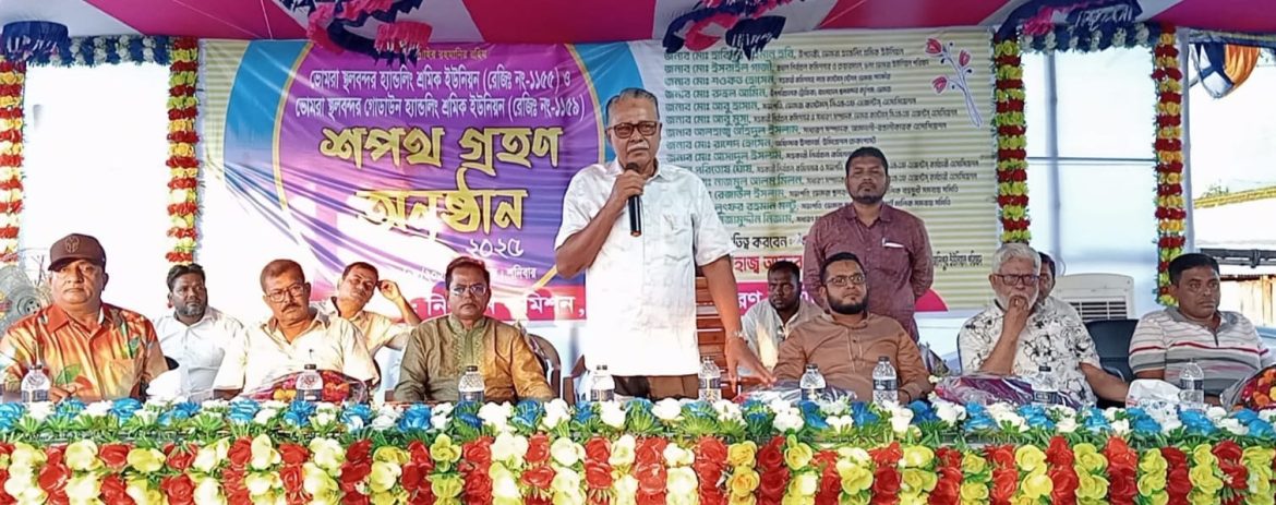 সাতক্ষীরা ভোমরা স্থলবন্দর শ্রমিক ইউনিয়নের নবনির্বাচিত কমিটির শপথ