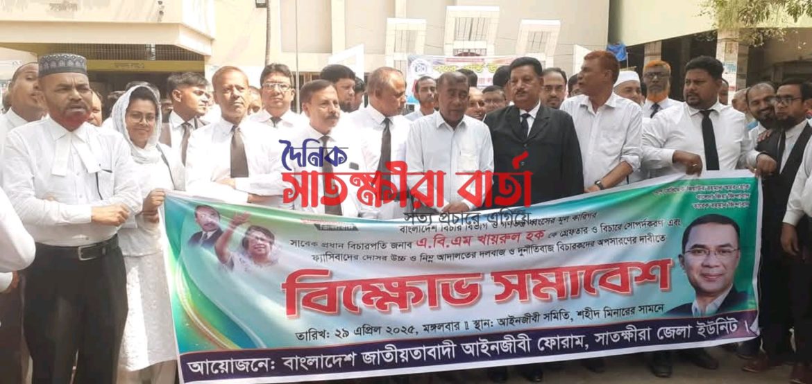 সাবেক প্রধান বিচারপতি এ,বি,এম,খায়রুল হকের গ্রেফতারের দাবীতে জাতীয়তাবাদী আইনজীবী ফোরাম সাতক্ষীরা শাখার বিক্ষোভ সমাবেশ