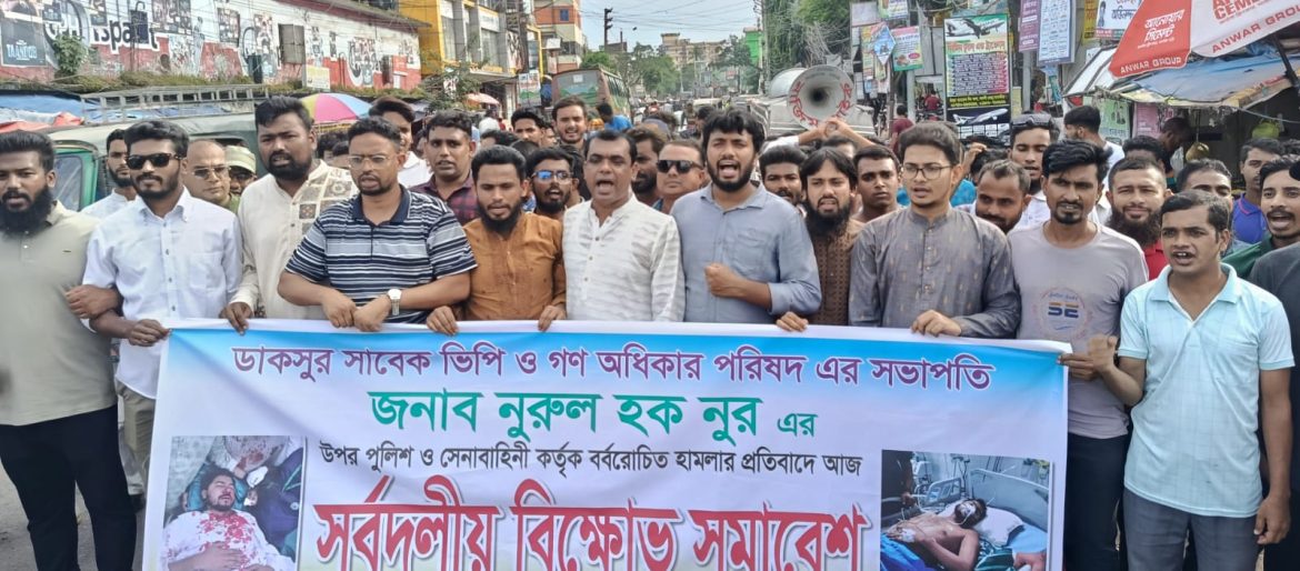 সাবেক ভিপি নূরের উপর হামলার প্রতিবাদে সাতক্ষীরায় বিক্ষোভ মিছিল