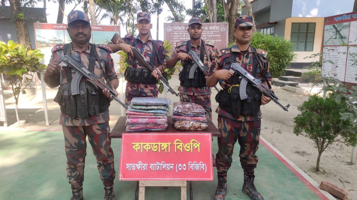 গোয়েন্দা তথ্যের ভিত্তিতে কাকডাঙ্গা বিওপির বিশেষ পৃথক চারটি আভিযানিক দল সীমান্ত পিলার—১৩/৩ এস এর ৪,৫,৬ আরবি হতে ৩০০—৪০০ গজ বাংলাদেশের অভ্যন্তরে কলারোয়া থানাধীন গেড়াখালী, ভাদিয়ালী, কেড়াগাছি নামক স্থান হতে ৫,৮৫,০০০ টাকা মূল্যের ভারতীয় ঔষধ ও শাড়ি আটক করে। মাদরা বিওপির বিশেষ আভিযানিক দল সীমান্ত পিলার—১৩/৩ এস এর ১০ আরবি হতে আনুমানিক ২০০ গজ বাংলাদেশের অভ্যন্তরে কলারোয়া থানাধীন শ্মশ্বান মাঠ নামক স্থান হতে ৩৫,০০০ টাকা মূল্যের ভারতীয় ঔষধ আটক করে। এছাড়াও, চান্দুরিয়া বিওপির বিশেষ আভিযানিক দল সীমান্ত পিলার ১৭/৭ এস এর ৬ আরবি হতে আনুমানিক ২০০ গজ বাংলাদেশের অভ্যন্তরে কলারোয়া থানাধীন চান্দুরিয়া নামক স্থান হতে ৭০,০০০ টাকা মূল্যের ভারতীয় ঔষধ আটক করে। সর্বমোট— ৬,৯০,০০০/— (ছয় লক্ষ নব্বই হাজার) টাকা মূল্যের বিভিন্ন চোরাচালানী মালামাল আটক করে। চোরাকারবারী কর্তৃক বর্ণিত মালামাল শুল্ককর ফাঁকি দিয়ে অবৈধভাবে ভারত হতে বাংলাদেশে পাচার করায় জব্দ করা হয়। এভাবে ভারতীয় দ্রব্য সামগ্রী চোরাচালানের কারনে দেশীয় শিল্প ক্ষতিগ্রস্থ হবার পাশাপাশি দেশ উল্লেখযোগ্য রাজস্ব আয় হতে বঞ্চিত হচ্ছে। বিজিবি টহলদল কর্তৃক উদ্ধারকৃত ভারতীয় মালামাল সাতক্ষীরা কাস্টমস এ জমা করার কার্যক্রম প্রক্রিয়াধীন রয়েছে।